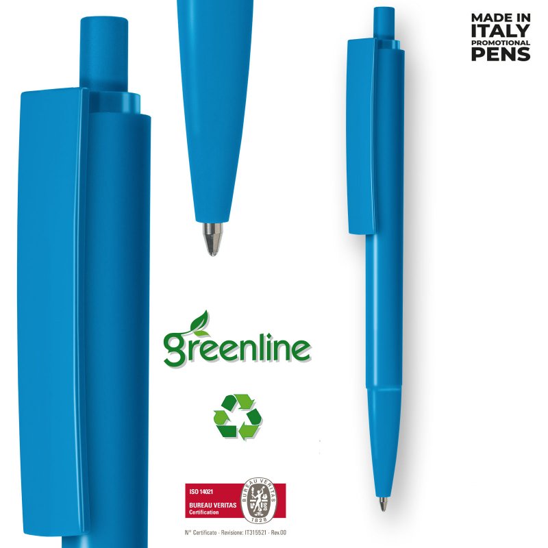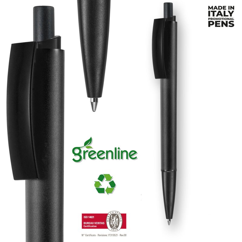 Corps en ABS 100% recyclé avec finition soft touch et clip matt en ABS 100% recyclé Ecriture 2 Km - Bille ø 1 mm Encre Dokumental disponible en bleu et noir